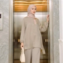 Looks bahannya crinkle dan sedikit shiny, sangat flowy, sekilas terlihat spt bahan suede, ringan, cocok sekali untuk semi formal